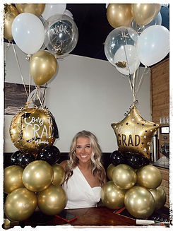 This deluxe helium balloon combo will bring a smile to any graduate. Includes 4 mylar balloons, one jumbo helium balloon, 3 regular sized helium balloon, fun twisty balloons, and balloon base.